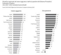 Valore del Sistema produttivo culturale e creativo, l'Umbria sotto la media